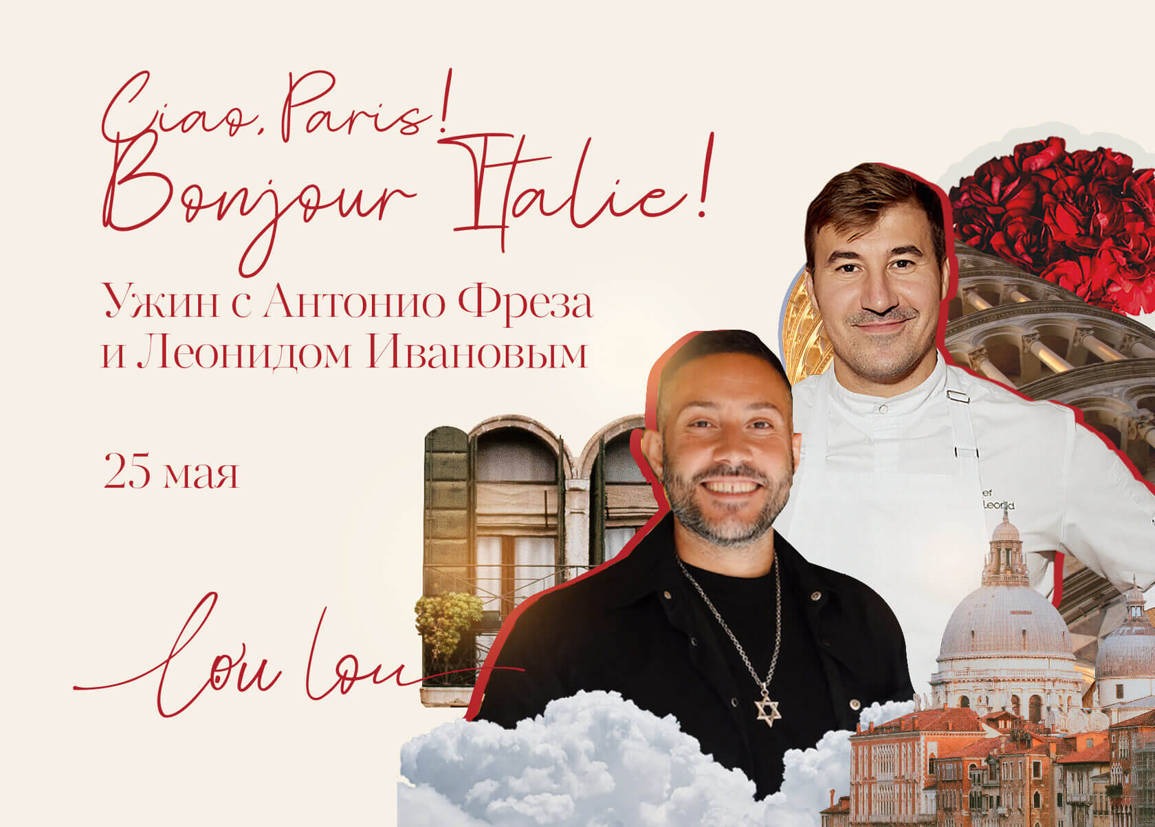 Если на вопрос «Италия или Франция?» у вас нет однозначного ответа, то советуем отправиться сегодня в ресторан Lou Lou. Специально для ужина Ciao, Paris! Bonjour Italie! сюда приедет петербургский шеф-повар Антонио Фреза (Sea, Marso Polo, Saviv), который вместе с бренд-шефом ресторанов Alba Group Леонидом Ивановым приготовит специалитеты Италии, дополненные израильскими и французскими нотками. Всего 6 курсов, включая десерт.