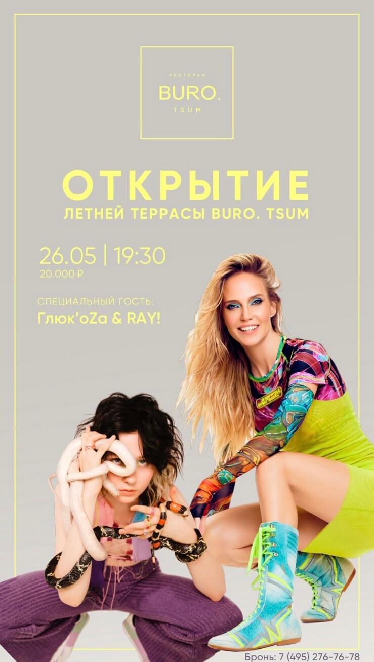 По случаю открытия террасы с панорамным видом на город в эту субботу Buro.Tsum закатывает шумную вечеринку с морскими ежами, устрицами, гребешками, крабами, коктейлями от Белуги и другими изысканными специалитетами. За музыкальную составляющую вечера отвечают Глюкоза и RAY!, а каждого гостя будут ждать фотографы и подарки от DANHERA.
