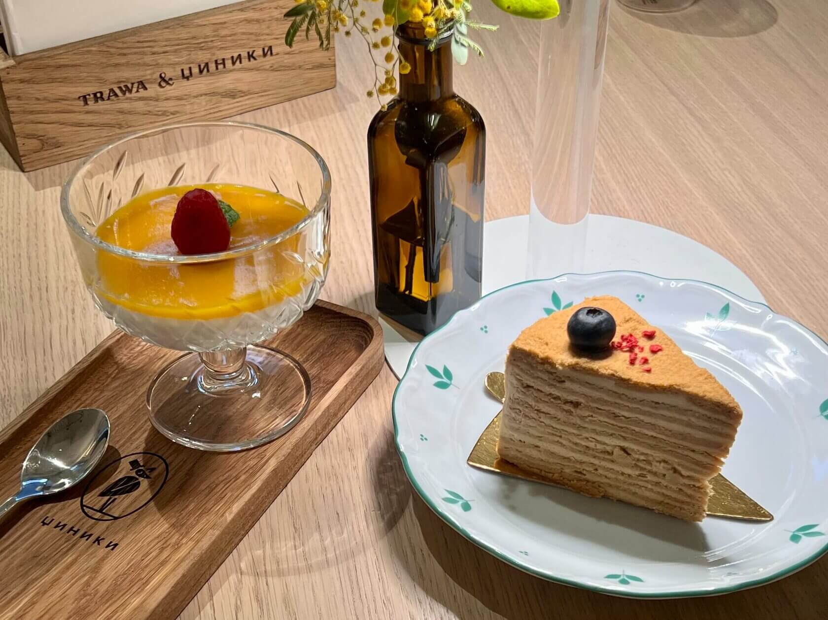 Панна котта (430₽), медовик (490₽)