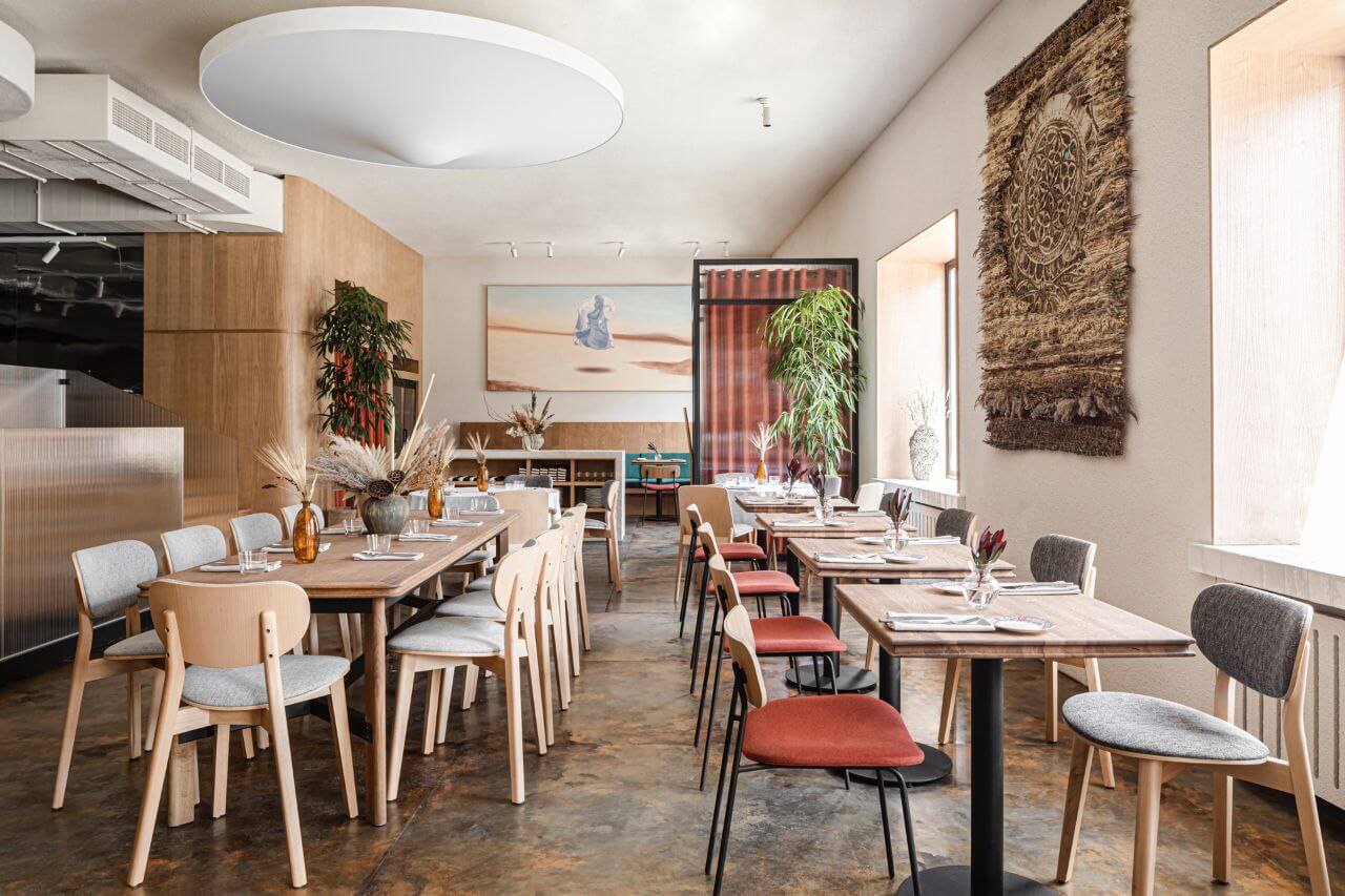 Ресторан выглядит интересно и нестандартно: современная мебель миксуется арт-объектами: например, на созданной специально для ресторана картине изображен тающий в дымке силуэт Persiana. На открытой кухне сразу три главных "музыкальных" инструмента Марка – хоспер, дровяная печь и гриль робата. И отдельный зал со сводчатым потолком является барным пространством: здесь Руслан Мингазов и Никита Дьяченко миксует коктейли на сложносочиненных ингредиентах, таких как оливковый джин, фисташковый абсент и артишоковый биттер.