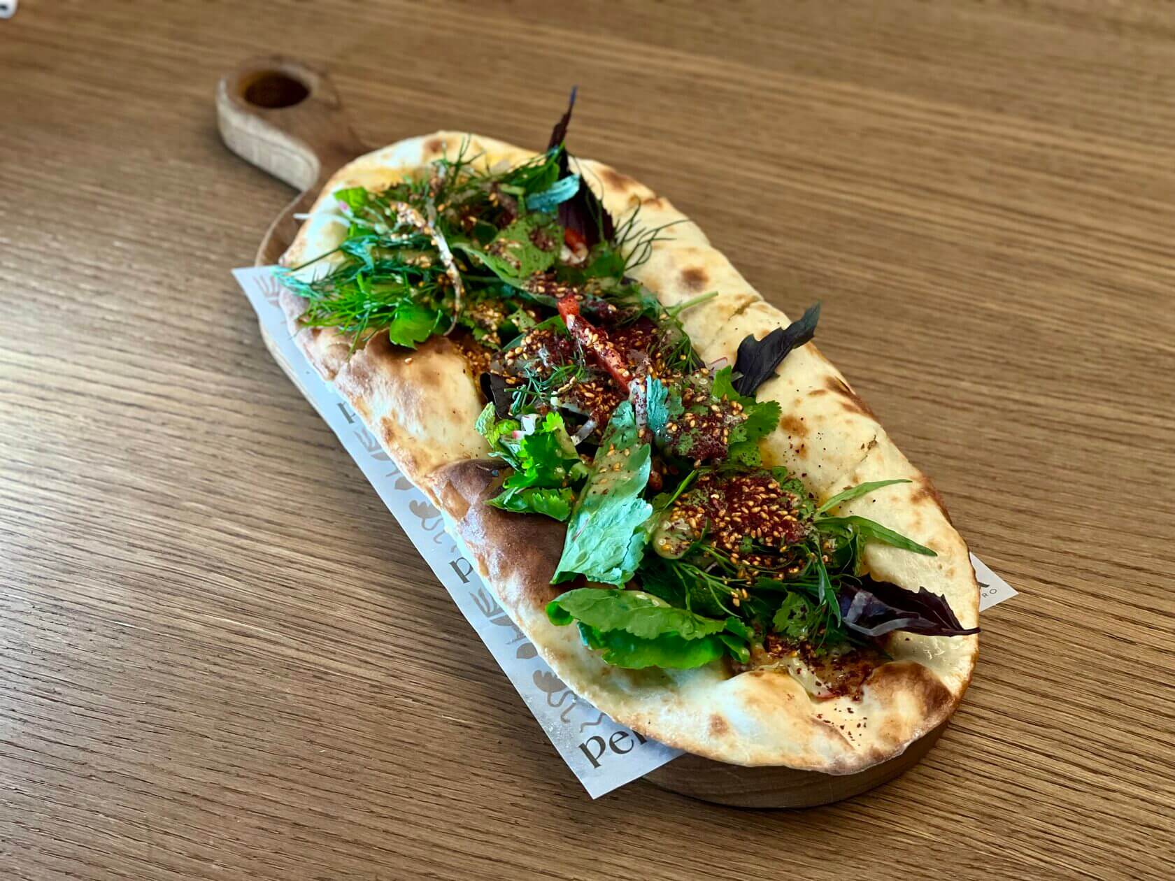 Однозначно фирменное блюдо ресторана — персидская пицца персиана: ее делают из теста, которое ферментируют двое суток, потом выпекают лепёшку, а затем щедро посыпают бараньим фаршем с мухамарой, горой ароматной зелени, джонджоли и кольраби. Редакция Москва Ресторанная очень надеется, что "персиана" не станет товарным знаком, как в случае с пинсой/пинцей, и мы увидем это блюдо не только в ресторанах Марка. И да, обязательно попробуйте персиану с кальмарами и жаренными сморчками.