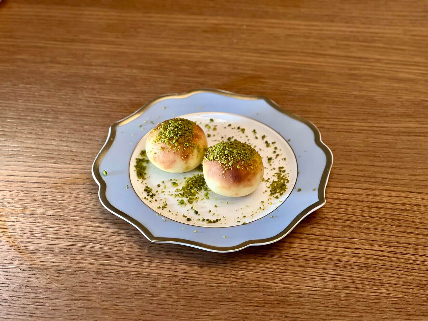 Маленькие сырные пончики начиняют миксом иранских, кавказских и ближневосточных сыров, а затем запекает в печи, а при подаче щедро посыпают дроблеными фисташками из Ирана. Смело берите в стол, а лучше 2-3 порции, не пожалеете.