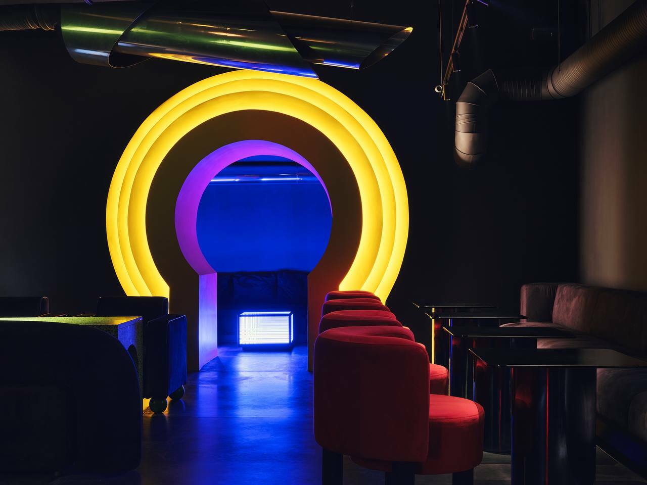 Неповторимый интерьер в стиле ретро-футуризма включает в себя дизайнерские решения, навеянные эпохой покорения космоса и футуристическими фильмами Тарковского. В зале расставлены предметы эпохи 60−70-х, с соответствующим аудио- и видеорядом в зоне импровизированной сцены под музыкальные выступления.