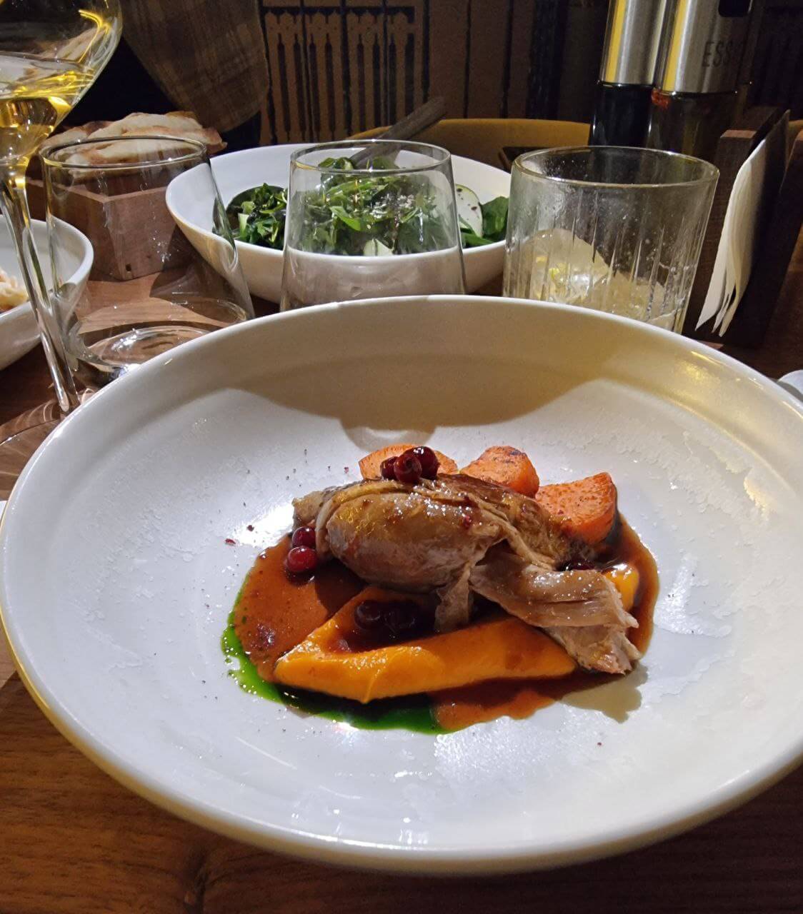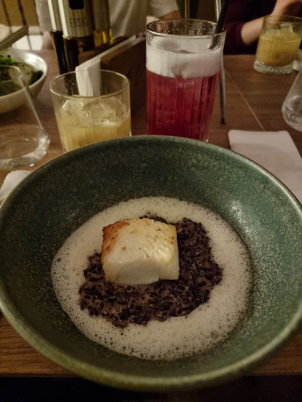 Ответить на вопрос рыба или птица мы не смогли, поэтому решили не выбирать, а заказать сразу два горячих блюда: Утиная ножка конфи (1250₽) и Палтус с рисом неро венере (1490₽). В первом случае на столе оказалась нежная утка с морковным кремом со сливками и запеченным бататом на гарнир. На второй тарелке нас ожидал аппетитный кусочек рыбы, которая буквально таила во рту, в сочетании с рисом со сливками и пармезаном в стиле ризотто. А еще был рыбный бульон, лайм, пена из овощного соуса с фенхелем, луком шалот и луком-пореем. От количества ингредиентов и образующихся во рту вкусовых оттенков у нас закружилась голова!