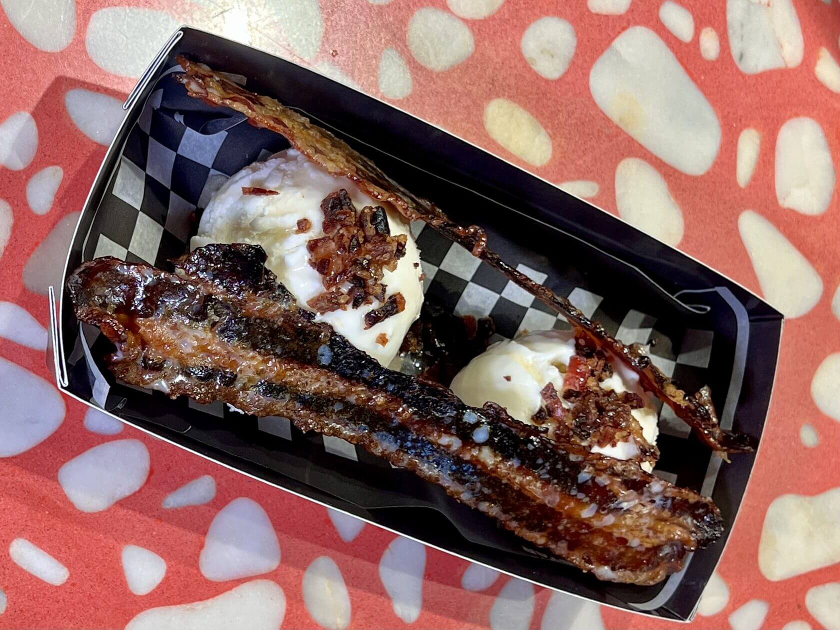 Интересными, хоть и выжигающими рецепторы, оказываются халапеньо в кляре (400₽) с соусом ранч. А вот десертную позицию «мороженое с беконом» (300р) лучше обходить стороной. Бруски подожжённого бекона никак не справляются с идеей покорить нас непривычным сочетанием.