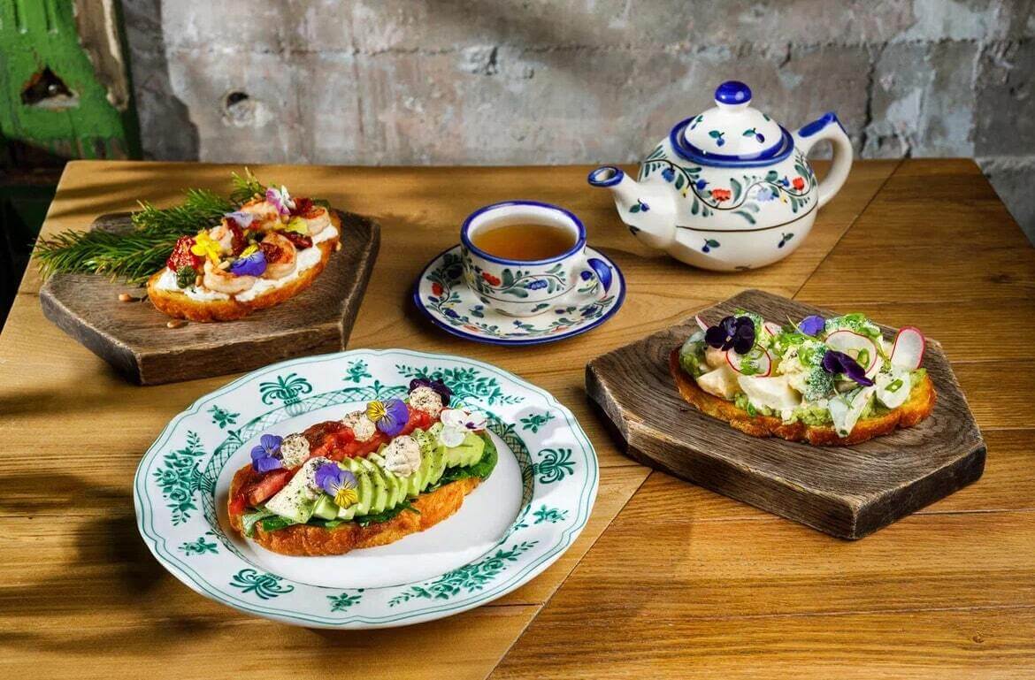 Можно попробовать скрэмбл с козьим сыром и трюфелем (1280₽), а можно всё поставить на сладкое и заказать булочку с миндальным кремом и вареньем из черники и ежевики (460), ленивые вареники из топленого творога с вишнёвым соусом (880), банановую вафлю с грушей, бри и лимонным мороженым (780). Рай для сладкоежек обеспечивают с 9:00 до 14:00 по будням и до 16:00 в выходные дни.