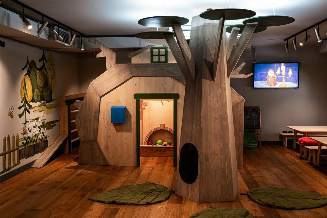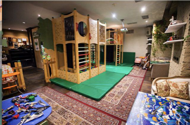 Изысканная атмосфера в темно-синих тонах, очень разнообразное детское меню и целых 3 этажа удовольствия для самых маленьких гостей (комната с горками и качелями, лабиринт и бассейн с шариками).